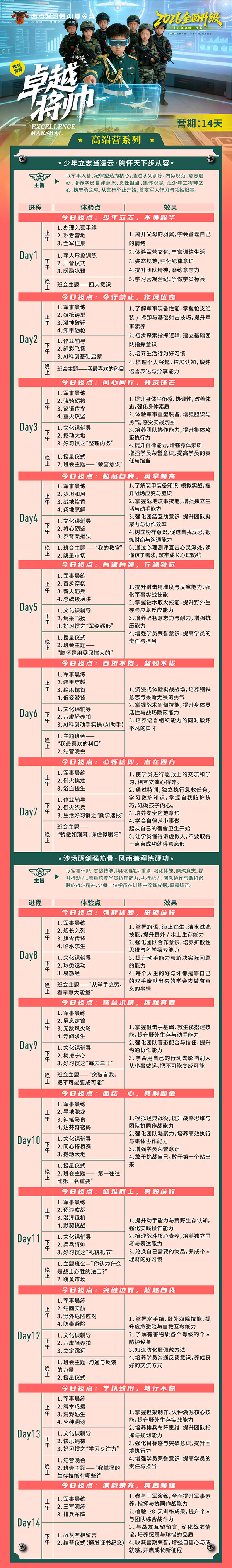 卓越将帅28天训练营,不止锤炼纪律,更深耕领导力与高阶成长,助力孩子完成从“兵”到“将”的蜕变。